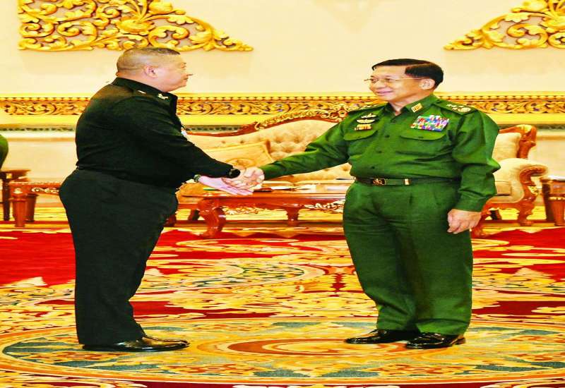 နိုင်ငံတော်စီမံအုပ်ချုပ်ရေးကောင်စီဥက္ကဋ္ဌ တပ်မတော်ကာကွယ်ရေးဦးစီးချုပ် ဗိုလ်ချုပ်မှူးကြီး မင်းအောင်လှိုင်အား မြန်မာနိုင်ငံကအိမ်ရှင်အဖြစ် လက်ခံကျင်းပပြုလုပ်သော (၃၄)ကြိမ်မြောက် မြန်မာ-ထိုင်း ဒေသဆိုင်ရာ နယ်ခြားကော်မတီအစည်းအဝေးသို့ တက်ရောက်ခဲ့သည့် ထိုင်းကိုယ်စားလှယ်အဖွဲ့ခေါင်းဆောင် Lt.Gen. Apichet Suesat ဦးဆောင်သည့် ကိုယ်စားလှယ်အဖွဲ့က ယနေ့မွန်းလွဲပိုင်းတွင် နေပြည်တော်ရှိ ဇေယျာသီရိဗိမာန် ဧည့်ခန်းမဆောင်၌ လာရောက်ဂါရဝပြု တွေ့ဆုံသည်။