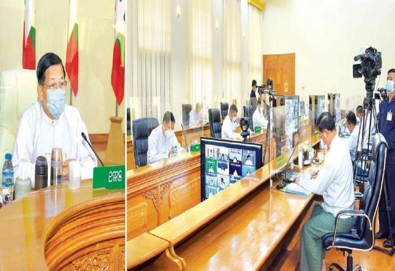 ကိုဗစ် - ၁၉ ရောဂါ ကာကွယ်၊ ထိန်းချုပ်၊ ကုသရေးဆိုင်ရာ (၁၁)ကြိမ်မြောက် ညှိနှိုင်းအစည်းအဝေးကို ယနေ့နံနက်ပိုင်းတွင် နေပြည်တော်ရှိ ဘုရင့်နောင်ရိပ်သာ အစည်းအဝေးခန်းမ၌ ကျင်းပပြုလုပ်ရာ နိုင်ငံတော်စီမံအုပ်ချုပ်ရေးကောင်စီ ဥက္ကဋ္ဌ၊ ပြည်ထောင်စုသမ္မတ မြန်မာနိုင်ငံတော် အိမ်စောင့်အစိုးရအဖွဲ့၊ နိုင်ငံတော်ဝန်ကြီးချုပ် ဗိုလ်ချုပ်မှူးကြီး မင်းအောင်လှိုင် တက်ရောက်အမှာစကား ပြောကြားသည်။