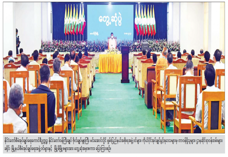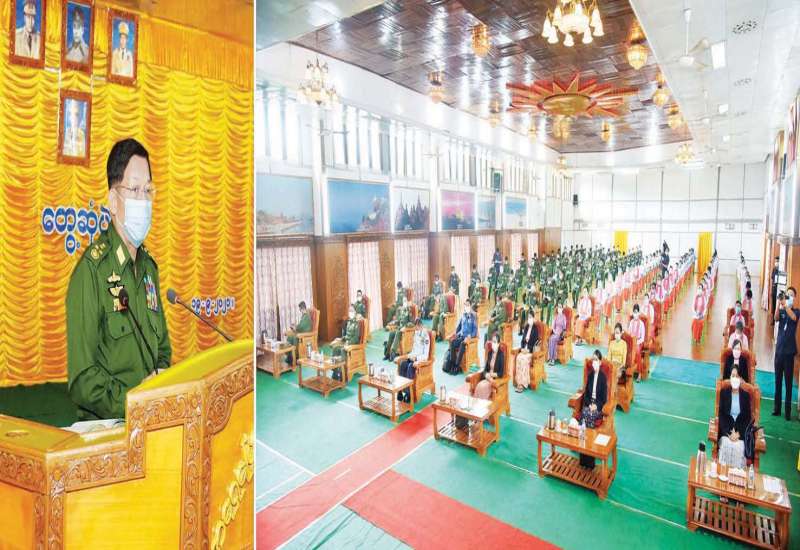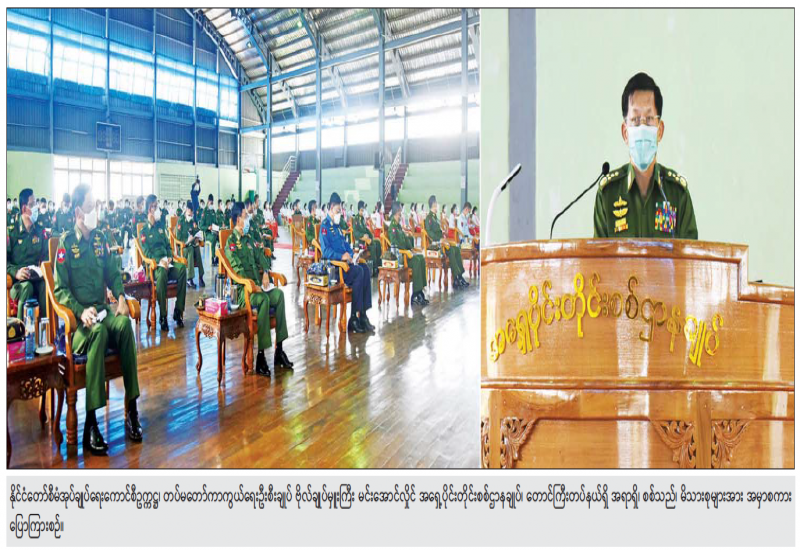 တပ်မတော်၏ အဓိကတာဝန်သည် နိုင်ငံတော်ကာကွယ်ရေးတာဝန်ဖြစ်ပြီး လိုအပ်ချက်အရ နိုင်ငံတော်၏ တာဝန်များကို ခေတ္တတာဝန်ယူ ထမ်းဆောင်နေရခြင်းဖြစ်ကြောင်း၊ စစ်စည်းကမ်း သည် တပ်မတော်၏ ကျောရိုးပင်ဖြစ်သဖြင့် စည်းကမ်းသေဝပ်၍ အမိန့်နာခံမှုကောင်းစွာဖြင့် လုပ်ဆောင်ကြစေလိုကြောင်းနှင့် မိမိတို့တာဝန် ထမ်းဆောင်သည့် တပ်၊ တပ်မတော်၊ ဒေသနှင့် တိုင်းပြည်၏ အကျိုးစီးပွားကို ကောင်းမွန်တိုးတက်အောင် မိမိတို့ တတ်စွမ်းသရွေ့ ကြိုးပမ်း ဆောင်ရွက်ရမည်ဖြစ်ပြီး မိမိကိုယ်ကို ထိန်းသိမ်း နေထိုင်ကြရမည်ဖြစ်ကြောင်း နိုင်ငံတော် စီမံအုပ်ချုပ်ရေးကောင်စီဥက္ကဋ္ဌ တပ်မတော်ကာကွယ်ရေးဦးစီးချုပ် ဗိုလ်ချုပ်မှူးကြီး မင်းအောင်လှိုင် က ယနေ့မွန်းလွဲပိုင်းတွင် ပြင်ဦးလွင်တပ်နယ်ရှိ နည်းပြအရာရှိကြီးများ၊ ကထိက အရာရှိကြီးများ၊ ပါရဂူဆေးမှူးများ၊ ဆရာ၊ ဆရာမများ၊ သန္ဓေအရာရှိ၊ စစ်သည်၊ မိသားစု များအား စစ်တက္ကသိုလ်၊ ဘွဲ့နှင်းသဘင်ခန်းမ၌ တွေ့ဆုံအမှာစကားပြောကြားစဉ် ထည့်သွင်း ပြောကြားသည်။