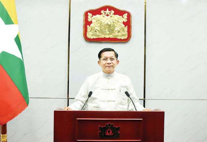 နိုင်ငံတော်စီမံအုပ်ချုပ်ရေးကောင်စီ အစည်းအဝေး (၁၅/၂၀၂၁)ကို ယနေ့မွန်းလွဲပိုင်းတွင် နေပြည်တော်ရှိ နိုင်ငံတော်စီမံအုပ်ချုပ်ရေး ကောင်စီဥက္ကဋ္ဌရုံး အစည်းအဝေးခန်းမ၌ ကျင်းပရာ နိုင်ငံတော်စီမံအုပ်ချုပ်ရေးကောင်စီဥက္ကဋ္ဌ၊ နိုင်ငံတော်ဝန်ကြီးချုပ် ဗိုလ်ချုပ်မှူးကြီး မင်းအောင်လှိုင် တက်ရောက်အမှာစကား ပြောကြားသည်။