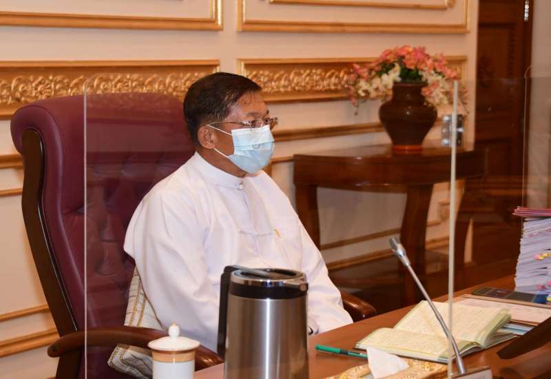 ကိုဗစ် - ၁၉ ရောဂါ ကာကွယ်၊ ထိန်းချုပ်၊ ကုသရေးဆိုင်ရာ (၁၀)ကြိမ်မြောက် ညှိနှိုင်းအစည်းအဝေးကို ယနေ့နံနက်ပိုင်းတွင် နေပြည်တော်ရှိ ဘုရင့်နောင်ရိပ်သာ အစည်းအဝေးခန်းမ၌ ကျင်းပပြုလုပ်ရာ နိုင်ငံတော်စီမံအုပ်ချုပ်ရေးကောင်စီ ဥက္ကဋ္ဌ၊ ပြည်ထောင်စုသမ္မတမြန်မာနိုင်ငံတော် အိမ်စောင့်အစိုးရအဖွဲ့၊ နိုင်ငံတော်ဝန်ကြီးချုပ် ဗိုလ်ချုပ်မှူးကြီး မင်းအောင်လှိုင် တက်ရောက်အမှာစကား ပြောကြားသည်။