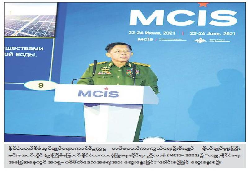 (၉)ကြိမ်မြောက်နိုင်ငံတကာလုံခြုံရေးဆိုင်ရာညီလာခံ (Moscow Conference on International Security-2021(MCIS-2021)) ဖွင့်ပွဲအခမ်းအနားကို ယနေ့ နံနက်ပိုင်း တွင် ရုရှားဖက်ဒရေးရှင်းနိုင်ငံ၊ မော်စကိုမြို့ရှိ RADISSON Hotel ၌ ကျင်းပပြုလုပ်ရာ နိုင်ငံတော်စီမံအုပ်ချုပ်ရေးကောင်စီ ဥက္ကဋ္ဌ၊ တပ်မတော်ကာကွယ်ရေး ဦးစီးချုပ် ဗိုလ်ချုပ်မှူးကြီး မင်းအောင်လှိုင် ပါဝင်တက်ရောက်သည်။