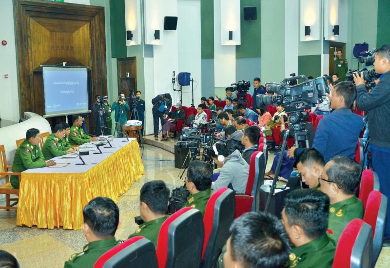 တပ်မတော်သတင်းစာရှင်းလင်းပွဲကို ယနေ့နံနက်ပိုင်းတွင် နေပြည်တော်ရှိ တပ်မတော်စစ်သမိုင်းပြတိုက်၌ ပြုလုပ်သည်။