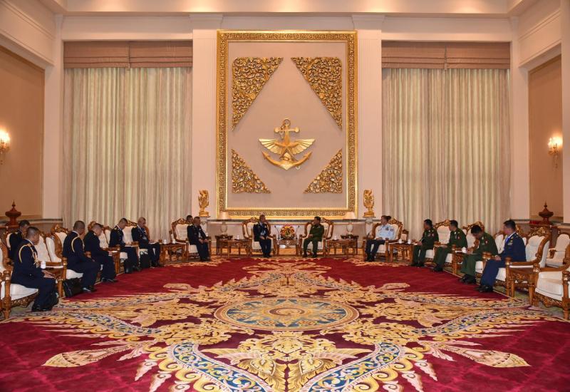 တပ်မတော်ကာကွယ်ရေးဦးစီးချုပ် ဗိုလ်ချုပ်မှူးကြီး မင်းအောင်လှိုင်သည် ထိုင်းဘုရင့် လေတပ်ဦးစီးချုပ် Air Chief Marshal Maanat Wongwat အား ယနေ့ နံနက်ပိုင်းတွင် နေပြည်တော်ရှိ ဇေယျာသီရိဗိမာန် ဧည့်ခန်းမဆောင်၌ လက်ခံ တွေ့ဆုံသည်။