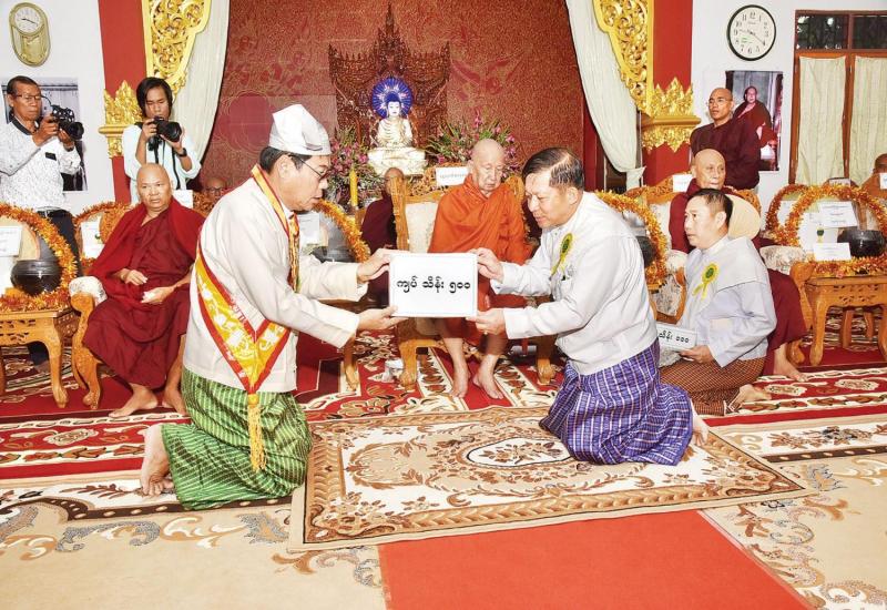 ရန်ကုန်တိုင်းဒေသကြီး ရန်ကင်းမြို့နယ် ကမ္ဘာအေးဘုရားလမ်းရှိ ဓမ္မစကြာ ပဋိပတ်ရိပ်သာ ကျောင်းတိုက်အတွင်း၌ စေတနာရှင် အလှူရှင်များ စုပေါင်း လှူဒါန်းသည့် အနန္တသုခဓမ္မစကြာ ဓမ္မဗိမာန် ငါးထပ်ကျောင်းတော်ကြီး မဟာပန္နက်တော်တင်၊ တွင်းတော်ဝန်း မင်္ဂလာအခမ်းအနားကို ယနေ့နံနက်ပိုင်းတွင် ကျင်းပရာ ရွှေသုဝဏ်ဆရာတော်ကြီး အဘိဓဇမဟာရဋ္ဌဂုရု၊ အဂ္ဂမဟာ ပဏ္ဍိတ၊ အဂ္ဂမဟာသဒ္ဓမ္မဇောတိကဓဇ၊ ဘဒ္ဒန္တသဒ္ဓိယ အမှူးပြုသော ဆရာတော်၊ သံဃာတော်များ ကြွရောက်ချီးမြှင့်တော်မူကြပြီး တပ်မတော်ကာကွယ်ရေးဦးစီးချုပ် ဗိုလ်ချုပ်မှူးကြီး မင်းအောင်လှိုင် တက်ရောက်၍ ပန္နက်တော်တင်ပေးသည်။