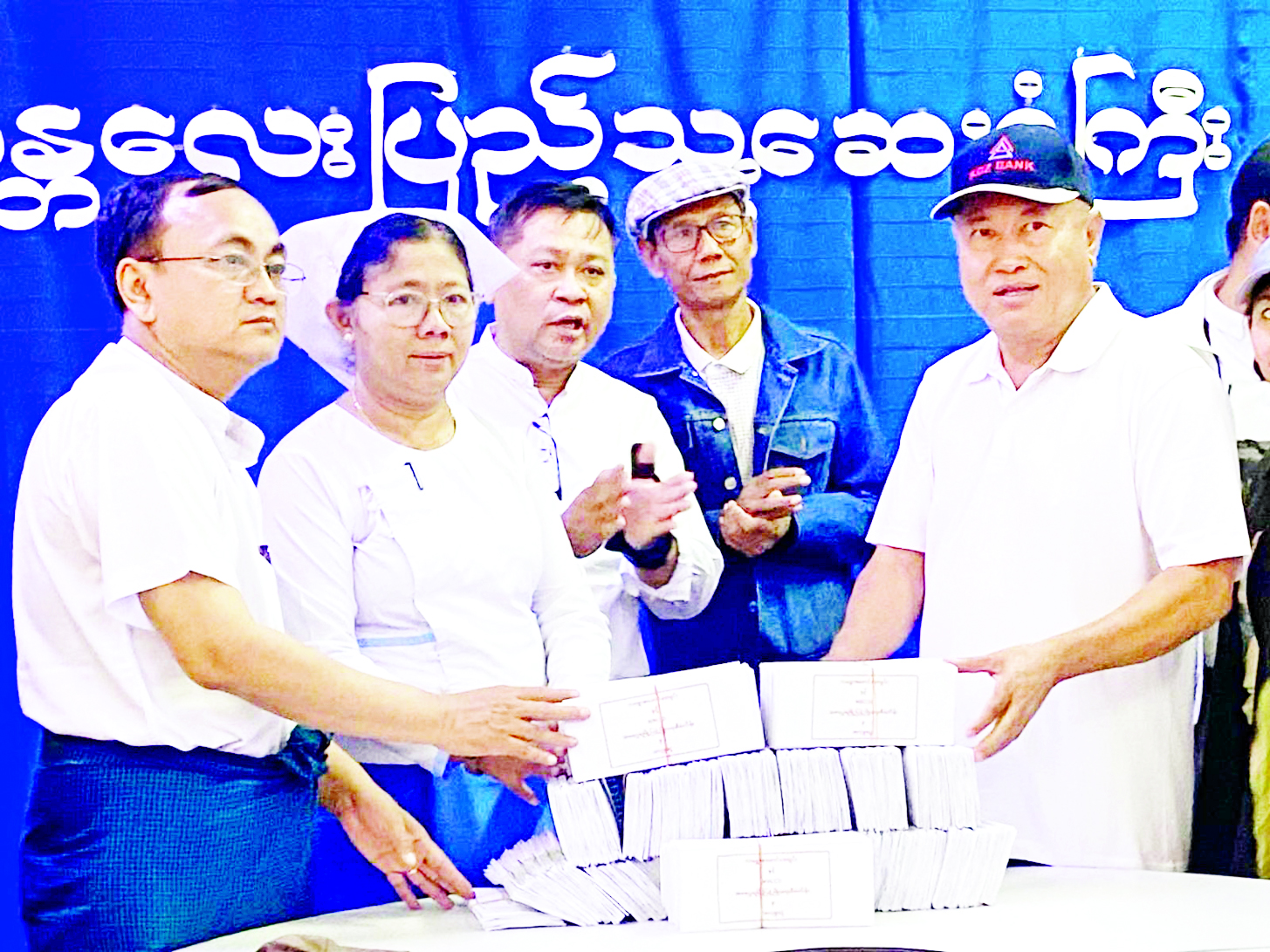 ထို့အပြင် ကမ္ဘောဇဖောင်ဒေးရှင်းနာယက ဦးအောင်ကိုဝင်းက နေပြည်တော် ခုတင် -၁၀၀၀ ပြည်သူ့ဆေးရုံကြီးတွင် ဆေးရုံတက်ရောက်ကုသနေကြသော လူနာ ၃၁၀ အတွက် တစ်ဦးလျှင် ငွေကျပ် ၅၀၀၀၀ နှုန်းဖြင့် စုစုပေါင်းငွေကျပ် ၁၅၅ သိန်း၊ ဆေးရုံကြီးမှကျန်းမာရေးဝန်ထမ်း ၈၈၈ ဦးတို့အတွက် တစ်ဦးလျှင် ငွေကျပ် ၅၀၀၀၀ နှုန်းဖြင့် စုစုပေါင်း ငွေကျပ် ၄၄၄ သိန်း၊ ဆေးရုံတက်ရောက် ကုသနေကြသော ငလျင်ဒဏ်သင့်လူနာများနှင့် ဆေးရုံကြီးအတွက် အရေးပေါ်လိုအပ်ချက်များကို လွယ်ကူလျင်မြန်စွာ စီမံသုံးစွဲနိုင်ရန် ငွေကျပ်သိန်းပေါင်း ၅၀၀၀ စုစုပေါင်းငွေကျပ် ၅၅၉၉ သိန်း ပေးအပ်လှူဒါန်းခဲ့ကြောင်း သိရသည်။
