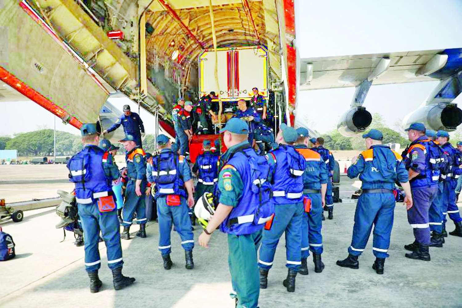 နိုင်ငံတော်အစိုးရအနေဖြင့် ငလျင်ဒဏ်သင့်ဒေသများရှိ ပျက်စီးဆုံးရှုံးမှုများကို အလျင်အမြန်စုံစမ်းစစ်ဆေးပြီး အချိန်နှင့်တစ်ပြေးညီ ကူညီကယ်ဆယ်ရေးလုပ်ငန်းများ ဆောင်ရွက်လျက်ရှိသည့်အပြင် ပြည်ပမှ လူသားချင်းစာနာထောက်ထားမှဆိုင်ရာ အကူအညီများကို လမ်းဖွင့်ပေးထားပြီးဖြစ်ရာ ယနေ့တွင် ငလျင်ဒဏ်သင့် ပြည်သူများအတွက် မလေးရှား၊ ထိုင်းနှင့် ရုရှားနိုင်ငံတို့မှ ကယ်ဆယ်ရေးအဖွဲ့များ၊ ဆရာဝန်များနှင့် သူနာပြုဆေးအဖွဲ့များ လူသားချင်းစာနာထောက်ထားမှုဆိုင်ရာ အကူအညီပစ္စည်းများ၊ ဆေးဝါးများသည် မြန်မာနိုင်ငံသို့ ထပ်မံရောက်ရှိကြသည်။