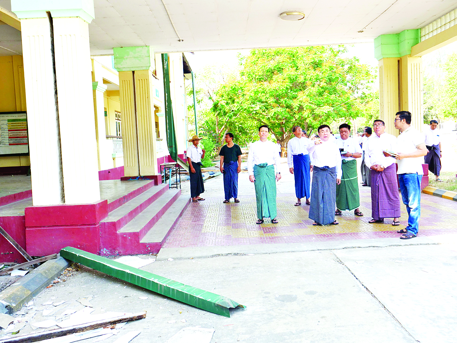 ထိုမှတစ်ဆင့် ပြည်ထောင်စုဝန်ကြီးသည် ဇမ္ဗူသီရိမြို့နယ် အမှတ်(၈) အခြေခံပညာအထက်တန်းကျောင်းနှင့် အမှတ်(၆) အခြေခံပညာအထက်တန်းကျောင်းတို့သို့ သွားရောက်၍ ပြင်းထန်သည့်ငလျင်ဘေးဒဏ်ကြောင့် ပျက်စီးမှုအခြေအနေများကို လိုက်လံကြည့်ရှုစစ်ဆေးကာ သက်ဆိုင်ရာတာဝန်ရှိသူများအား အဆင့်အလိုက် ဆောင်ရွက်ရမည့် လုပ်ငန်းစဉ်များကို ရှင်းလင်းမှာကြားသည်။