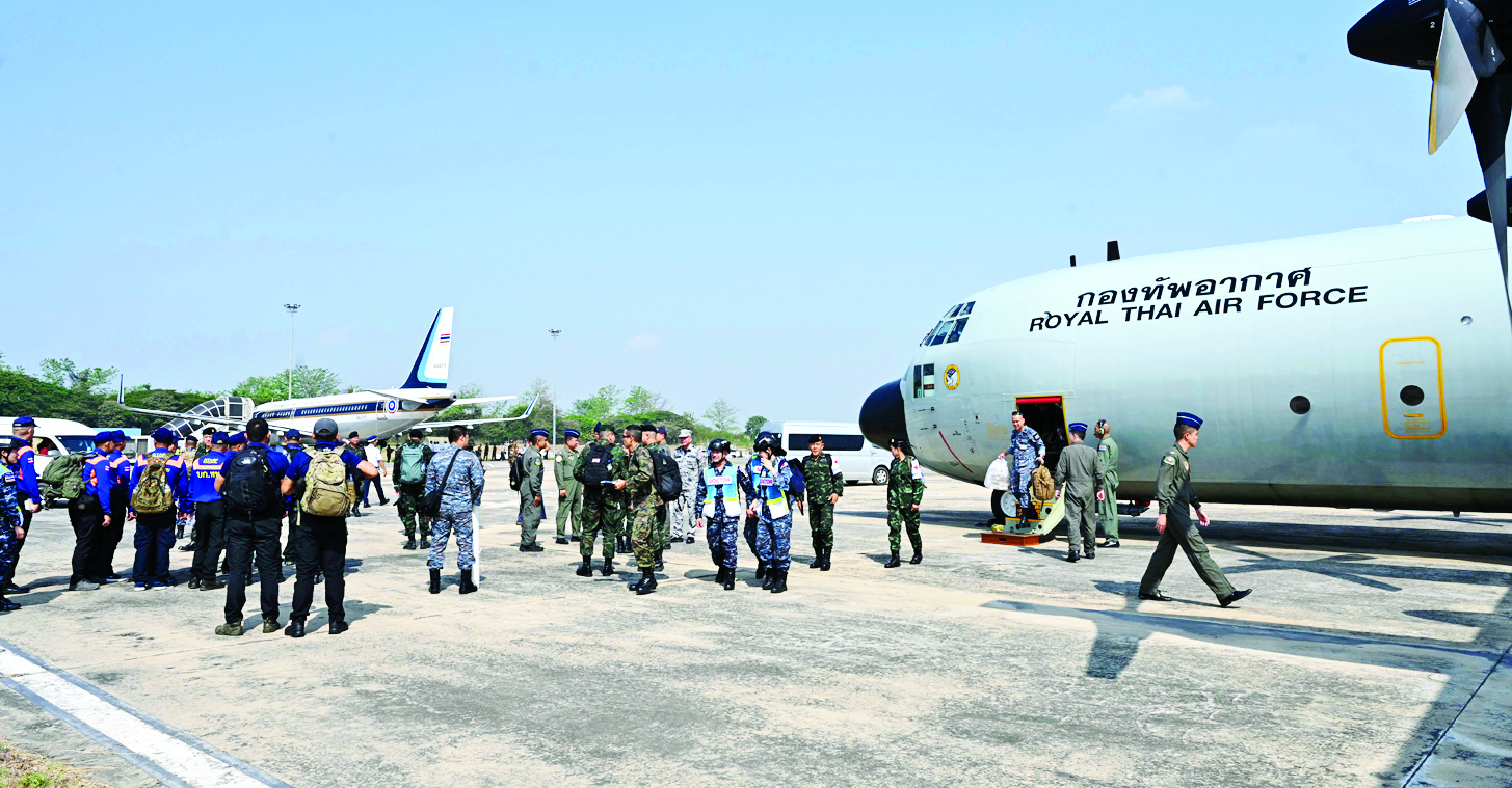 ယနေ့နံနက်ပိုင်းနှင့် ညနေပိုင်းတို့တွင် မလေးရှားနှင့် ထိုင်းနိုင်ငံတို့မှ ရှာဖွေကယ်ဆယ်ရေးအဖွဲ့များနှင့်အတူ ဆရာဝန်နှင့် သူနာပြုဆေးအဖွဲ့၊ လူသားချင်းစာနာထောက်ထားမှုဆိုင်ရာ အကူအညီပစ္စည်းများနှင့် ဆေးဝါးများ နေပြည်တော်ရှိ တပ်မတော်လေဆိပ်သို့ ရောက်ရှိလာကြသည်။