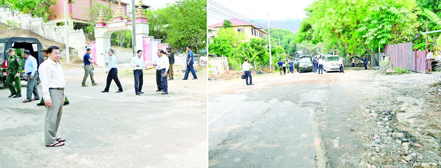 ယင်းနောက် နိုင်ငံတော်စီမံအုပ်ချုပ်ရေးကောင်စီဥက္ကဋ္ဌ နိုင်ငံတော်ဝန်ကြီးချုပ်နှင့် အဖွဲ့ဝင်များသည် မင်းလမ်းရပ်ကွက် ကမ်းနားလမ်းပေါ်ရှိ မိုးဇာရေပေးဝေရေးစက်ရုံ ငလျင်ဘေးဒဏ်ကြောင့် ထိခိုက်ပျက်စီးခဲ့မှုနှင့် ပင်မလမ်းအူကြောင်း ရွေ့လျားပြောင်းလဲခဲ့သည်အထိ ထိခိုက်ပျက်စီးခဲ့ရမှုများကို ကြည့်ရှုစစ်ဆေးပြီး တာဝန်ရှိသူများ၏ တင်ပြချက်များအပေါ် လိုအပ်သည်များ လမ်းညွှန်မှာကြားသည်။