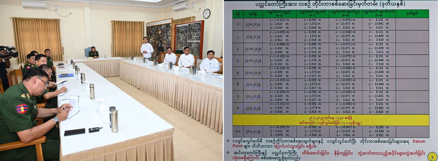 ရှင်းလင်း တင်ပြမှုများအပေါ် နိုင်ငံတော်စီမံအုပ်ချုပ်ရေးကောင်စီဥက္ကဋ္ဌ တပ်မတော်ကာကွယ်ရေးဦးစီးချုပ်က မာရဝိဇယဗုဒ္ဓရုပ်ပွား တော်မြတ်ကြီး တည်ဆောက်ရေးလုပ်ငန်းများ စတင်ဆောင်ရွက်စဉ်ကတည်းကပင် ရေရှည်တည်တံ့ခိုင်မြဲစေရေးအတွက် လေပြင်းတိုက်ခတ်မှုဒဏ်ခံနိုင်ရေး၊ မြေငလျင်ဒဏ်ခံနိုင်ရေးနှင့် သဘာဝဘေးဒဏ်အန္တရာယ်များမှ ခံနိုင်မှုရှိစေရေး စနစ်တကျတွက်ချက်တည်ဆောက်ခဲ့မှုနှင့် ခေတ်မီနည်းပညာများ အသုံးပြုတည်ဆောက်ခဲ့မှုကြောင့် ယခုကဲ့သို့ ပြင်းထန်ငလျင်ဖြစ်ပေါ်ခဲ့သည့်အချိန်တွင် ဆင်းတုတော်ကြီးနှင့် ပလ္လင်တော်ကြီးတို့အနေဖြင့် တိမ်းစောင်းခြင်း၊ နိမ့်ကျခြင်း၊ တွဲဆက်ထားသည့် အပိုင်းများ ကွဲအက်ခြင်းတို့ (လုံးဝ) မရှိခဲ့ခြင်းဖြစ်ကြောင်း၊ တာဝန်ရှိသူများအနေဖြင့် အနည်းငယ်မျှသော ထိခိုက်ပျက်စီးမှုများကို ပြုပြင်ဆောင်ရွက်ရာတွင်လည်း စနစ်တကျဖြင့် ပြုပြင်ဆောင်ရွက်ရေး ကြပ်မတ်ဆောင်ရွက်သွားရန် လိုကြောင်းနှင့် အခြားလိုအပ်သည်များကို မှာကြားသည်။