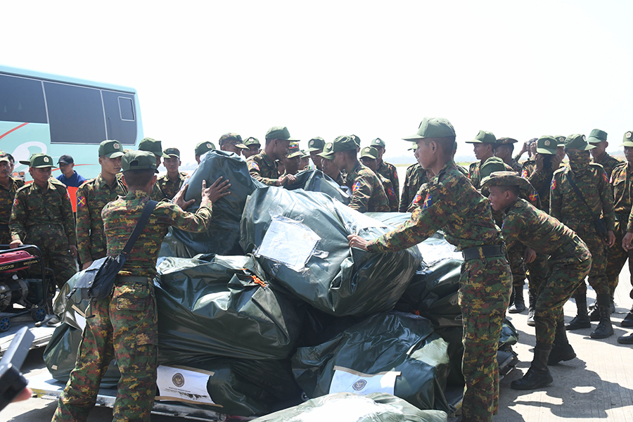 ယနေ့တွင် ရုရှား၊ အင်ဒိုနီးရှား၊ ထိုင်း၊ ဘူတန်၊ ဖိလစ်ပိုင်၊ လာအိုနှင့် ဘင်္ဂလားဒေ့ရှ်နိုင်ငံများမှ လူသားချင်းစာနာထောက်ထားမှုဆိုင်ရာအကူအညီပစ္စည်းများ၊ ဆေးဝါးများ၊ ကယ်ဆယ်ရေးအဖွဲ့များ၊ ဆရာဝန်များနှင့် သူနာပြုဆေးအဖွဲ့များသည် နေပြည်တော် တပ်မတော်လေဆိပ်သို့ ရောက်ရှိကြခြင်းဖြစ်သည်။