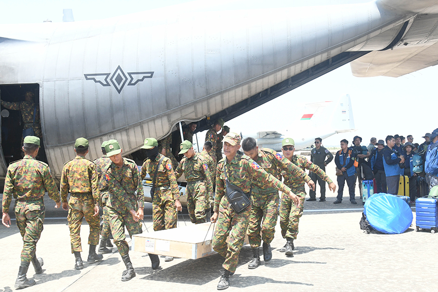 နိုင်ငံတော်အစိုးရအနေဖြင့် ငလျင်ဘေးသင့်ဒေသများတွင် ကူညီကယ်ဆယ်ရေးလုပ်ငန်းများကို အချိန်နှင့်တစ်ပြေးညီ ဆောင်ရွက်လျက်ရှိရာ ယနေ့နံနက်ပိုင်းတွင် နိုင်ငံတကာမှ ကယ်ဆယ်ရေးဆေးကုသမှုအဖွဲ့များသည် သက်ဆိုင်ရာလေကြောင်းခရီးအလိုက် နေပြည်တော် တပ်မတော်လေဆိပ်သို့ ထပ်မံရောက်ရှိလာကြသည်။