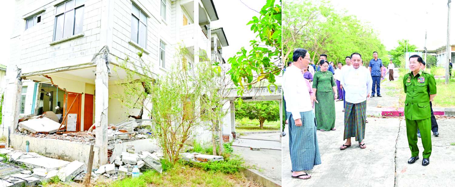 နိုင်ငံတော်စီမံအုပ်ချုပ်ရေးကောင်စီဥက္ကဋ္ဌ နိုင်ငံတော်ဝန်ကြီးချုပ် ဗိုလ်ချုပ်မှူးကြီး မင်းအောင်လှိုင်သည် ကောင်စီတွဲဖက်အတွင်းရေးမှူး ဗိုလ်ချုပ်ကြီး ရဲဝင်းဦးနှင့် အဖွဲ့ဝင်များလိုက်ပါ၍ ယနေ့ညနေပိုင်းတွင် နေပြည်တော်ပြည်သူ့ဆေးရုံကြီး(ခုတင်-၃၀၀)ရှိ ဆေးကုသဆောင်များနှင့် ဝန်ထမ်းအိမ်ရာများ၌ မန္တလေးငလျင်ကြီးလှုပ်ခတ်မှုဖြစ်ပွားစဉ် ထိခိုက်ပျက်စီးခဲ့ရမှုများကို သွားရောက်ကြည့်ရှုစစ်ဆေးသည်။