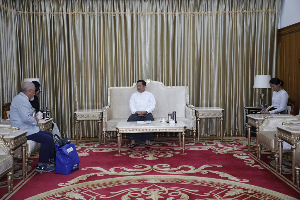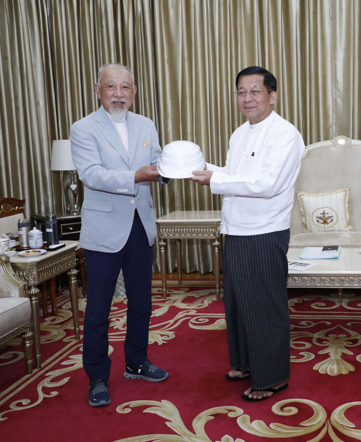 နိုင်ငံတော်စီမံအုပ်ချုပ်ရေးကောင်စီဥက္ကဋ္ဌ နိုင်ငံတော်ဝန်ကြီးချုပ် ဗိုလ်ချုပ်မှူးကြီး မင်းအောင်လှိုင်ထံသို့ ယနေ့မွန်းလွဲပိုင်းတွင် မြန်မာနိုင်ငံ အမျိုးသားပြန်လည်သင့်မြတ်ရေးဆိုင်ရာ ဂျပန်အစိုးရ၏ အထူးကိုယ်စားလှယ်နှင့် နီပွန်ဖောင်ဒေးရှင်းဥက္ကဋ္ဌ H. E. Mr.Yohei SASAKAWA က နေပြည်တော်ရှိ တပ်မတော်ဧည့်ရိပ်သာ၌ လာရောက်တွေ့ဆုံပြီး ငလျင်ဘေးဒဏ်သင့်ဒေသများအတွက် ကူညီကယ်ဆယ်ရေးနှင့် အထောက်အကူပြုပစ္စည်းများ ပေးအပ်လှူဒါန်းသည်။