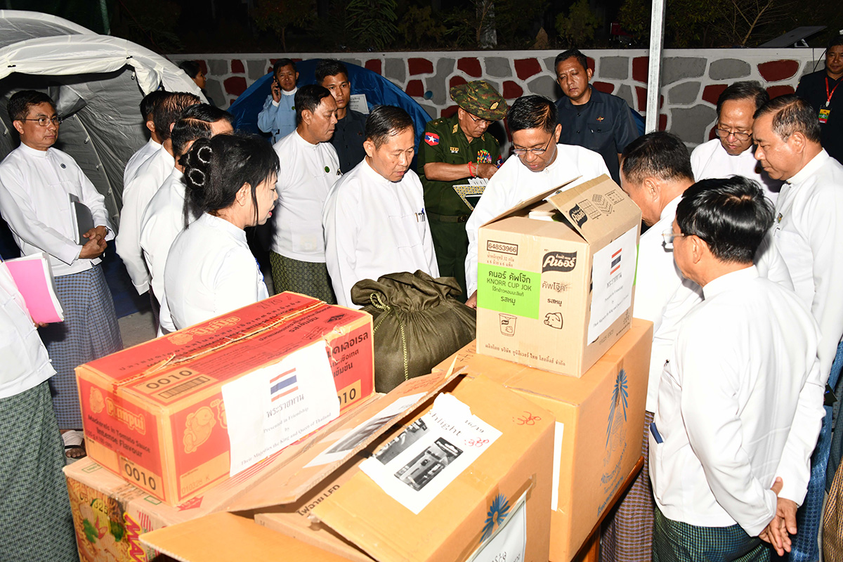 ဆွေးနွေးတင်ပြမှုများအပေါ် အမျိုးသားသဘာဝဘေးအန္တရာယ်ဆိုင်ရာ စီမံခန့်ခွဲမှု ကော်မတီဥက္ကဋ္ဌ နိုင်ငံတော်စီမံအုပ်ချုပ်ရေးကောင်စီ ဒုတိယဥက္ကဋ္ဌ ဒုတိယဝန်ကြီးချုပ် ဒုတိယ ဗိုလ်ချုပ်မှူးကြီး စိုးဝင်းက အဆောက်အအုံများအား ပြန်လည် တည့်မတ်ရန်အတွက် လုံလောက်သည့် ပစ္စည်းကိရိယာများ ရရှိရေး၊ ယာယီဆေးရုံများ အမြန်ဆုံးဖွင့်လှစ်နိုင်ရေး၊ သံဃာတော်များ၏ ဆွမ်း၊ ကွမ်းဝေယျာဝစ္စနှင့် ယာယီကျောင်းဆောင်များ အဆင်ပြေမှုရှိစေရေး၊ အဆောက်အအုံများ ပျက်စီးဆုံရှုံးသွားသည့် ပြည်သူများနှင့် ဝန်ထမ်းများအား နေရာချ ထားနိုင်ရေးအတွက် မိုးရာသီမတိုင်မီ နှစ်လအတွင်း အနိမ့်ဆုံး အဆင့် ယာယီအမိုးအကာ ရရှိ အောင် စီမံဆောင်ရွက်ရေး၊ အဆောက်အအုံများပျက်စီးမှု၊ ဖြိုချရန်လိုအပ်မှုနှင့် နေထိုင်ရန် သင့်/ မသင့်တို့ကို အမြန်ဆုံးစာရင်း ကောက်ယူရေး၊ အဆောက်အအုံ များကို ဖြိုချရသည်ဖြစ်စေ၊ အပျက်အစီးများကို ဖယ်ရှားရသည်ဖြစ်စေ မိသားစုပိုင်ပစ္စည်းများကို ပြန်လည်ရရှိနိုင်ရေးအတွက် စနစ်တကျစီမံပြုလုပ်ရေး၊ နိုင်ငံတကာအကူအညီများ လွယ်ကူချောမွေ့အဆင်ပြေစေရေးအတွက် စီမံဆောင်ရွက်ပေးနိုင်ရေးနှင့် လမ်းခရီးကန့်သတ်ချက်များနှင့် အကြမ်းဖက်သမား များ၏ နှောင့်ယှက်မှုများရှိနေသောကြောင့် လုံခြုံရေးကိစ္စရပ် များ အဆင်ပြေစေရန် ကယ်ဆယ်ရေးယာဉ်နှင့် ကယ်ဆယ်ရေးအဖွဲ့များ ဖြစ် ကြောင်းကို သိသာ ထင်ရှားသည့် အမှတ်အသားများ ပြုလုပ်၍ ခွင့်ပြုချက်၊ စီမံချက်တို့ဖြင့် စနစ်တကျစေလွှတ်ပေး နိုင်ရေး၊ ငလျင်ဒဏ်ကြောင့် သေဆုံးသူများ၊ ဒဏ်ရာရရှိသူများ အပေါ် ထောက်ပံ့ကြေးများ အမြန်ဆုံးထုတ်ပေးနိုင်ရေးနှင့် အရေးပေါ်စားနပ်ရိက္ခာများထောက်ပံ့ပေးနိုင်ရေး၊ သန့်ရှင်းသောသောက်ရေနှင့် သုံးရေရရှိရေး၊ လျှပ်စစ်မီး လျင်မြန်စွာရရှိရေးနှင့် စေတနာရှင်များ၏ ယန္တရားတစ်အုပ်တစ်မ အကူအညီပေးထားမှုများအပေါ် အမှန်တကယ်လိုအပ်သည့် လမ်း၊ တံတားနှင့် အဆောက်အအုံနေရာ များတွင် အသုံးပြုနိုင်ရေးအတွက် စနစ်တကျစီမံ၍ အကျိုးရှိအောင် ဆောင်ရွက်ရေး၊ ပြည်သူများအနေဖြင့် သဘာဝဘေးနှင့်ပတ်သက် သည့် ဆောင်ရန်၊ ရှောင်ရန် အကြောင်းအချက်များနှင့် သတင်းများကို ဆောလျင်မြန်ဆန်စွာသိရှိနိုင်ရေးနှင့် လှူဒါန်းသည့် ပစ္စည်းများ မလိုအပ်ဘဲ ပျက်စီးဆုံးရှုံးမှုမရှိစေရေးအတွက် ဆပ်ကော်မတီအလိုက် စနစ်တကျ စာရင်းပြုစုရေးကိစ္စရပ်များကို ဆွေးနွေးမှာကြားပြီး လိုအပ်သည်များကို NDMC အဖွဲ့ဝင်များနှင့် ပေါင်းစပ်ညှိနှိုင်းဆောင်ရွက်ပေးသည်။