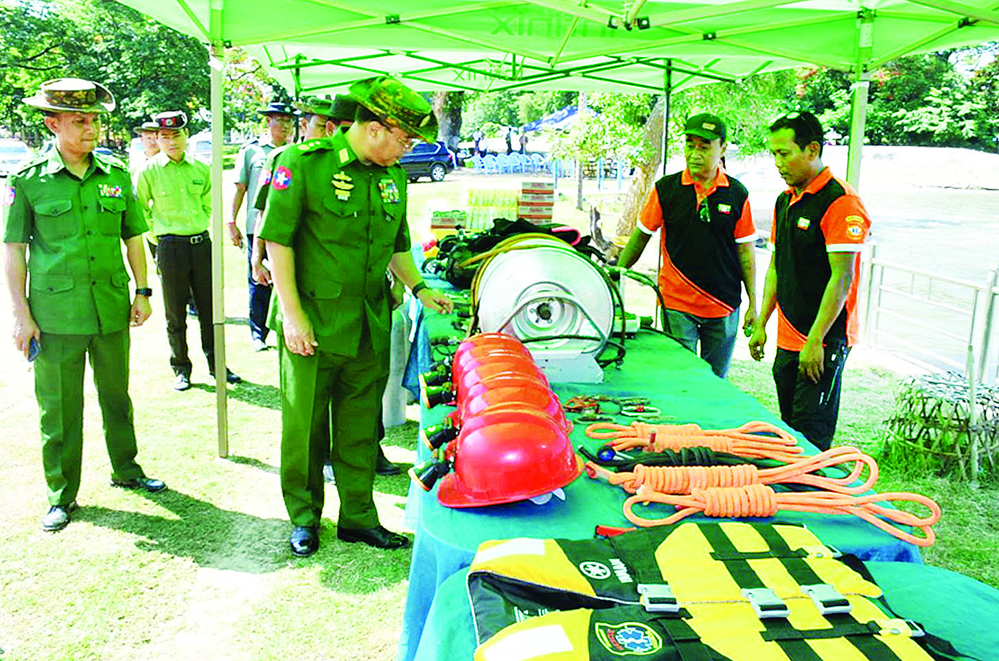 အလားတူ ကာကွယ်ရေးဦးစီးချုပ်ရုံး(ကြည်း)မှ ဒုတိယဗိုလ်ချုပ်ကြီးမျိုးသန့်နိုင်နှင့် တာဝန်ရှိသူများသည် ကျောက်ဆည်မြို့၊ မင်းရဲဆည်အတွင်း၌ မြန်မာနိုင်ငံမီးသတ်တပ်ဖွဲ့ဝင်များနှင့် Kyaukse Rescue (လူမှုကယ်ဆယ်ရေးအဖွဲ့)မှ သဘာဝဘေးအန္တရာယ်ကျရောက်ပါက ရှာဖွေကယ်ဆယ်ရေးလုပ်ငန်းများ ဆောင်ရွက်နိုင်ရန်အတွက် Speed Boat မောင်းနှင်လေ့ကျင့်မှုနှင့် ရေပြင်အသက်ကယ်ဆယ်ရေးလုပ်ငန်းများ လေ့ကျင့်ဆောင်ရွက်နေမှုများအား သွားရောက်ကြည့်ရှုစစ်ဆေးပြီး သဘာဝဘေးအန္တရာယ်များအတွက် မြေပြင်၌ အမှန်တကယ်လက်တွေ့ အသုံးချနိုင်ရေးအတွက် ရည်ရွယ်ဆောင်ရွက်ခြင်းဖြစ်ကြောင်းမှာကြားခဲ့ကာ လေ့ကျင့်ဆောင်ရွက်နေသူများအား စားသောက်ဖွယ်ရာများပေးအပ်ခဲ့ပြီး တာဝန်ရှိသူများမှ တင်ပြချက်များအပေါ် လိုအပ်သည်များ ပေါင်းစပ်ညှိနှိုင်းဆောင်ရွက်ပေးသည်။