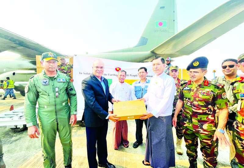 ဘင်္ဂလားဒေ့ရှ်နိုင်ငံမှအဖွဲ့ဝင် ၅၅ ဦးပါဝင်သည့် ကယ်ဆယ်ရေးနှင့်ဆေးဘက်ဆိုင်ရာအဖွဲ့သည် ယနေ့ မွန်းလွဲ ၂ နာရီတွင် နေပြည်တော်သို့ရောက်ရှိပြီး ငလျင်ဒဏ်သင့်ပြည်သူများအား လူသားချင်းစာနာထောက်ထားမှုအကူအညီများ ပေးအပ်ခဲ့ကြောင်း သိရသည်။