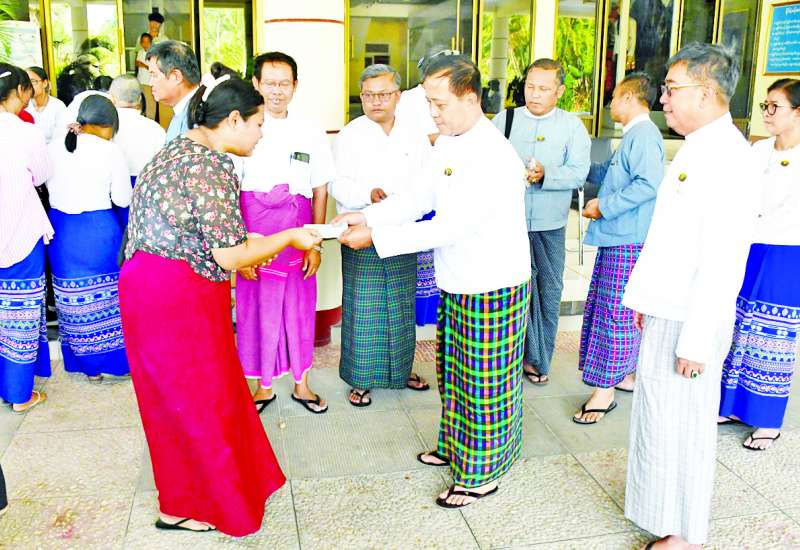 စိုက်ပျိုးရေး၊ မွေးမြူရေးနှင့်ဆည်မြောင်းဝန်ကြီးဌာန ပြည်ထောင်စုဝန်ကြီး ဦးမင်းနောင်နှင့် ဒုတိယဝန်ကြီးများသည် ယနေ့နံနက်ပိုင်းတွင် ဝန်ကြီးဌာနမှ ငလျင်‌‌ဘေးသင့်ဝန်ထမ်းများ ယာယီရွှေ့ပြောင်းနေထိုင်ရာနေရာများသို့ သွားရောက်ကြည့်ရှုအားပေး၍ ထောက်ပံ့ငွေများပေးအပ်သည်။