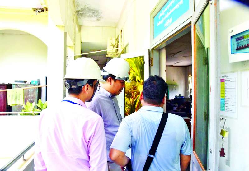 KMH Generation Structural Design Group မှ Structure Design Engineer ဦးကျော်မျိုးဟန် ဦးဆောင်သော ကျွမ်းကျင်ပညာရှင်များသည် ငလျင်ဘေးသင့်ခဲ့သည့် နေပြည်တော်ရှိ ပြန်ကြားရေးဝန်ကြီးဌာန ရုံးအဆောက်အအုံပျက်စီးမှုနှင့် ကြံ့ခိုင်မှု ရှိ ၊ မရှိအခြေအနေကို ယနေ့နံနက်ပိုင်းတွင် လှည့်လည်ကြည့်ရှုစစ်ဆေးသည်။