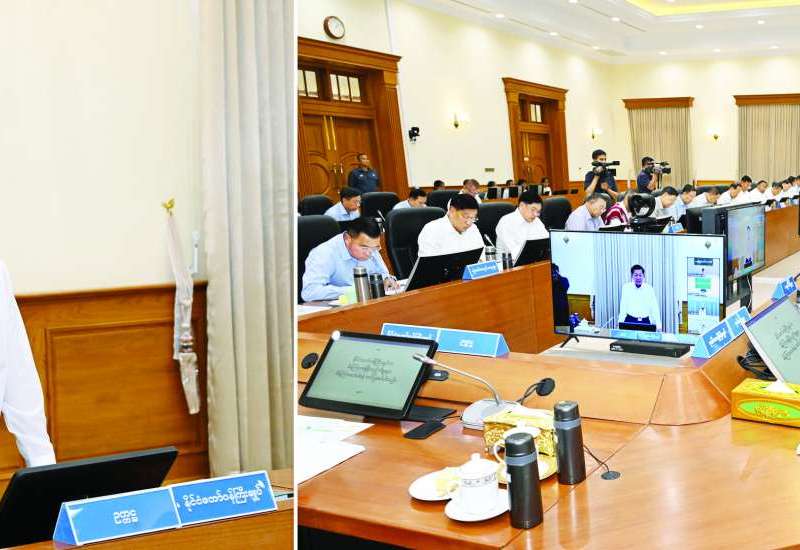 ပြည်ထောင်စုသမ္မတမြန်မာနိုင်ငံတော် ပြည်ထောင်စုအစိုးရအဖွဲ့အစည်းအဝေးကို ယနေ့မွန်းလွဲပိုင်းတွင် နိုင်ငံတော်စီမံအုပ်ချုပ်ရေးကောင်စီဥက္ကဋ္ဌရုံး အစည်းအဝေးခန်းမ၌ ကျင်းပပြုလုပ်ရာ နိုင်ငံတော်စီမံအုပ်ချုပ်ရေးကောင်စီဥက္ကဋ္ဌ နိုင်ငံတော်ဝန်ကြီးချုပ် ဗိုလ်ချုပ်မှူးကြီး မင်းအောင်လှိုင် တက်ရောက်အမှာစကားပြောကြားသည်။