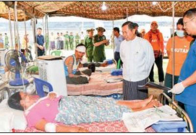 မတ် ၂၈ ရက်က အင်အားပြင်း မြေငလျင်လှုပ်ခတ်မှုကြောင့် လမ်းတံတား၊ အဆောက်အအုံများ ထိခိုက်ပျက်စီးခဲ့ရသည့်နေရာများသို့ ကူညီကယ်ဆယ်ရေးလုပ်ငန်းများကို တိုင်းစစ်ဌာနချုပ်အသီးသီးမှ တပ်မတော်သားများ၊ မြန်မာနိုင်ငံရဲတပ်ဖွဲ့ဝင်များ၊ မီးသတ်တပ်ဖွဲ့ဝင်များ၊ ပြည်ပနိုင်ငံများမှ ကူညီကယ်ဆယ်ရေးအဖွဲ့များ၊ ဌာနဆိုင်ရာဝန်ထမ်းများ၊ လူမှုကူညီရေးအသင်း/အဖွဲ့များနှင့် ဒေသခံပြည်သူများပူးပေါင်း၍ အချိန်နှင့်တစ်ပြေးညီ ကူညီဆောင်ရွက်ပေးလျက်ရှိရာ ယနေ့တွင် ကာကွယ်ရေးဦးစီးချုပ်ရုံး(ကြည်း)မှ ဒုတိယဗိုလ်ချုပ်ကြီး မျိုးမိုးအောင်၊ စစ်ကိုင်းတိုင်းဒေသကြီးဝန်ကြီးချုပ် ဦးမြတ်ကျော်နှင့် တာဝန်ရှိသူများသည် စစ်ကိုင်းမြို့ ပြည်သူ့ဆေးရုံကြီးသို့သွားရောက်၍ ငလျင်ဒဏ်သင့်ထိခိုက်ဒဏ်ရာရရှိသော ပြည်သူများအား ကျန်မာရေးစောင့်ရှောက်မှုလုပ်ငန်းများ ဆောင်ရွက်ပေးနေမှု၊ စစ်ကိုင်းမြို့ ဇက်ဆိပ်ကမ်းရှိ ကုန်ကားများ သွားလာမှုအဆင်ပြေစေရန် ဆောင်ရွက်ထားရှိမှု၊ ငလျင်ဒဏ်သင့်၍ ပြိုကျပျက်စီးသွားသော မြတ်ကိုယ်ပိုင်အထက်တန်းကျောင်း၌ နိုင်ငံတကာ ကူညီကယ်ဆယ်ရေးအဖွဲ့များနှင့်ပူးပေါင်း၍ ကူညီကယ်ဆယ်ရေးလုပ်ငန်းများ ဆောင်ရွက်နေမှု၊ မန္တလေးမြို့ ကမ်းနားလမ်းတစ်လျှောက်ရှိ လမ်းများပျက်စီးနေမှု၊ ပြည်ကြီးတံခွန်မြို့နယ် ချမ်းမြသာယာရပ်ရှိ နေမင်းဘုန်းတော်ကြီးသင် ပညာရေးကျောင်းနှင့် အမှတ်(၂၅)YEC ဘုန်းတော်ကြီးသင်အခြေခံပညာမူလတန်းလွန်ကျောင်းတို့၌ ရောက်ရှိနေသော ငလျင်ဒဏ်ကြောင့် ထိခိုက်ဒဏ်ရာရရှိသူများ၊ အာယုဒါနဆေးရုံတော်၌ နိုင်ငံတကာဆေးအကူ အညီပေးရေးအဖွဲ့များနှင့်ပူးပေါင်းကာ သံဃာတော်များ၊ သီလရှင်များနှင့် ပြည်သူများအား ကျန်းမာရေးစောင့်ရှောက်မှုပေးနေသည့် အခြေအနေများကို သွားရောက်ကြည့်ရှု၍ လိုအပ်သည်များ ပေါင်းစပ်ညှိနှိုင်းဆောင်ရွက်ပေးကာ ဆရာတော်များထံသို့ လှူဖွယ်ဝတ္ထုပစ္စည်းများ ဆက်ကပ်လှူဒါန်းခဲ့သည်။