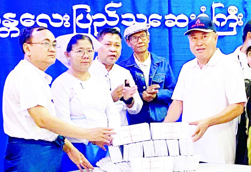 အသက်မွေးဝမ်းကျောင်းလုပ်ငန်းများ ပြန်လည်ထူထောင်ရေးလုပ်ငန်းကော်မတီဥက္ကဋ္ဌ သမဝါယမနှင့် ကျေးလက်ဖွံ့ဖြိုးရေးဝန်ကြီးဌာန ပြည်ထောင်စုဝန်ကြီး ဦးလှမိုးသည် ဒုတိယဝန်ကြီး ဦးမြင့်စိုး၊ နေပြည်တော်ကောင်စီဝင် (၂) ဦးဇေယျာလင်း၊ ညွှန်ကြားရေးမှူးချုပ်များ၊ သက်ဆိုင်ရာ တာဝန်ရှိသူများနှင့်အတူ ယနေ့နံနက်ပိုင်းက ငလျင်ဒဏ်သင့်ပြည်သူများနှင့် ဝန်ထမ်းများအား ထောက်ပံ့ပစ္စည်းများ  ပေးအပ်သည်။