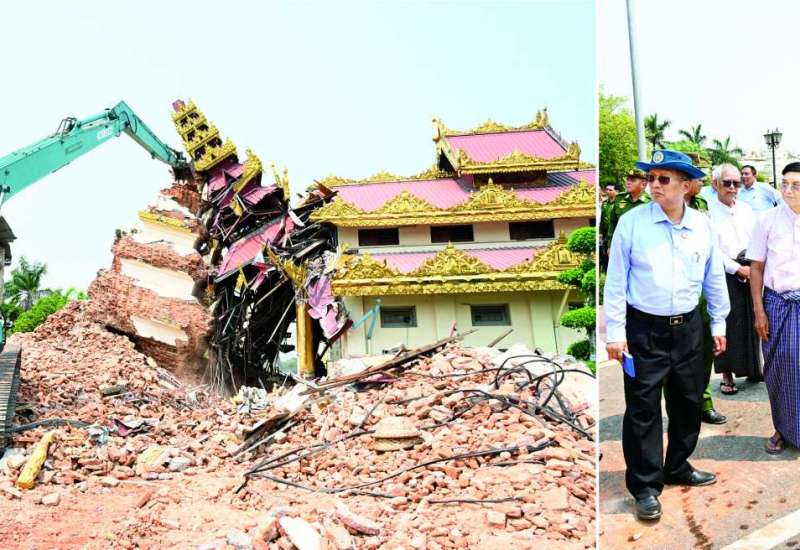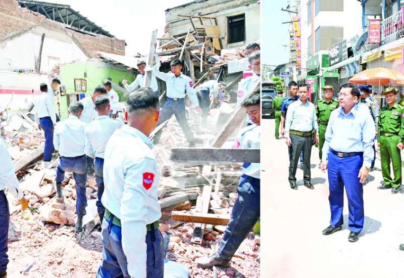 နိုင်ငံတော်စီမံအုပ်ချုပ်ရေးကောင်စီဥက္ကဋ္ဌ နိုင်ငံတော်ဝန်ကြီးချုပ် ဗိုလ်ချုပ်မှူးကြီးမင်းအောင်လှိုင်သည် ယနေ့နံနက်ပိုင်းတွင် နေပြည်တော်ကောင်စီနယ်မြေအတွင်းရှိ ငလျင်ဒဏ်သင့်နေရာများ၌ ကူညီကယ်ဆယ်ရေးနှင့် ပြန်လည်ထူထောင်ရေးလုပ်ငန်းများ ဆောင်ရွက်နေမှုအခြေအနေများကို သွားရောက်ကြည့်ရှုစစ်ဆေးပြီး လိုအပ်သည်များ လမ်းညွှန် မှာကြားသည်။