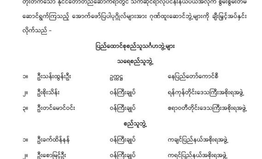 ရန်ကုန်မြို့နှင့် မန္တလေးမြို့အတွက် ရည်ညွှန်းလက်ကားဈေးနှုန်းများနှင့် ပြည်ထောင်စုနယ်မြေ နေပြည်တော်၊ တိုင်းဒေသကြီး/ပြည်နယ် မြို့တော်များအတွက် ရည်ညွှန်းလက်လီဈေးနှုန်းများ