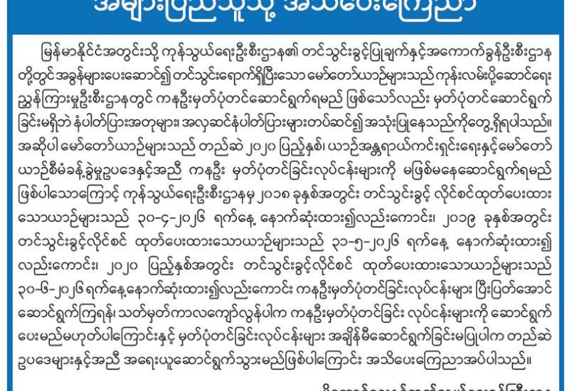 ပြောင်းလုပ်ငန်းရှင်များသို့ အသိပေးကြေညာချက်