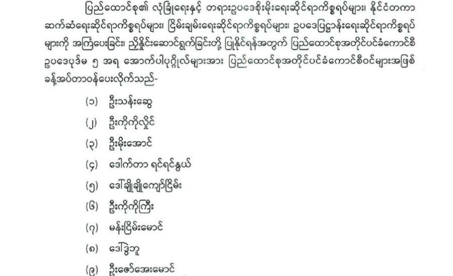 ပြည်ထောင်စုအတိုင်ပင်ခံကောင်စီဝင်များ ခန့်အပ်တာဝန်ပေးခြင်း