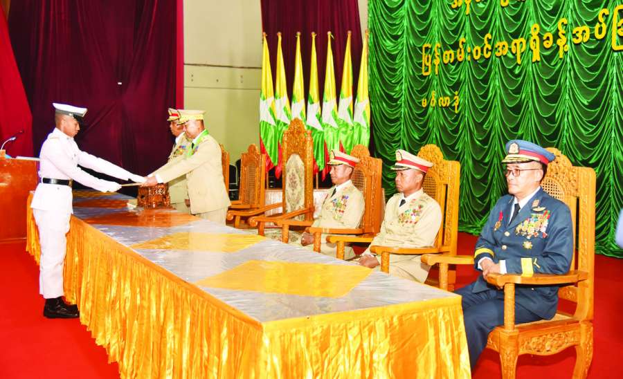 တပ်မတော်ဆေးတက္ကသိုလ် ဗိုလ်လောင်းသင်တန်းအမှတ်စဉ် (၂၆) ပြန်တမ်းဝင်အရာရှိ ခန့်အပ်ခြင်းအခမ်းအနားကို ယနေ့နံနက်ပိုင်းတွင် တပ်မတော်ဆေးတက္ကသိုလ်ဘွဲ့နှင်းသဘင်ခန်းမ၌ ကျင်းပရာ ကာကွယ်ရေးဦးစီးချုပ်ရုံး (ကြည်း) စစ်ရာထူးခန့်ချုပ် ဒုတိယ