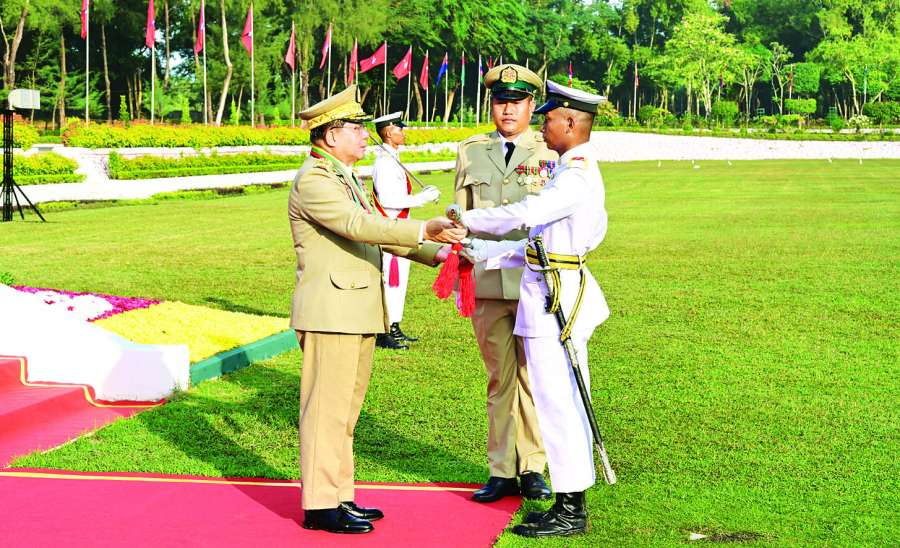 တပ်မတော်ဆေးတက္ကသိုလ်၊ ဗိုလ်လောင်းသင်တန်းအမှတ်စဉ် (၂၆) သင်တန်းဆင်းဂုဏ်ပြုစစ်ရေးပြအခမ်းအနားကို ယနေ့နံနက်ပိုင်းတွင် ရန်ကုန်မြို့ရှိ တပ်မတော်ဆေးတက္ကသိုလ်စစ်ရေးပြကွင်း၌ ကျင်းပပြုလုပ်ရာ နိုင်ငံတော်လုံခြုံရေးနှင့် အေးချမ်းသာယာရေးကော်မရှင်ဥက္ကဋ္ဌ တပ်မတော်ကာကွယ်ရေးဦးစီးချုပ် ဗိုလ်ချုပ်မှူးကြီး သတိုးမဟာသရေစည်သူ သတိုးသီရိသုဓမ္မ မင်းအောင်လှိုင် တက်ရောက်မိန့်ခွန်းပြောကြားသည်။