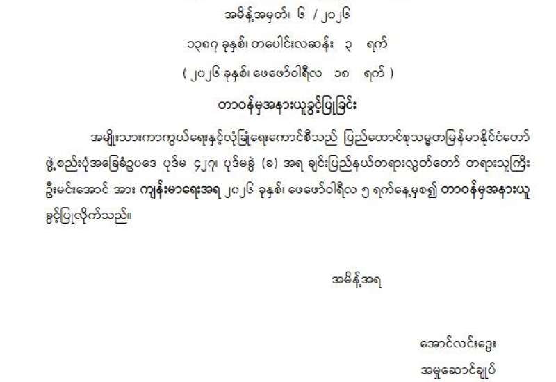 တာဝန်မှအနားယူခွင့်ပြုခြင်း