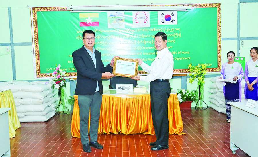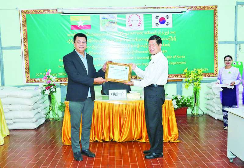 အာဆီယံအပေါင်းသုံး အရေးပေါ်ဆန်ရိက္ခာ (APTERR) အစီအစဉ်-၃ (၂၀၂၅) အရ ကိုရီးယားသမ္မတနိုင်ငံမှ လှူဒါန်းသော ဆန်တန်ချိန် ၁၆၂၀ ကို မန္တလေးတိုင်းဒေသကြီး စိုက်ပျိုးရေးဦးစီးဌာနမှတစ်ဆင့် မန္တလေးတိုင်းဒေသကြီးအစိုးရအဖွဲ့ထံသို့ လွှဲပြော