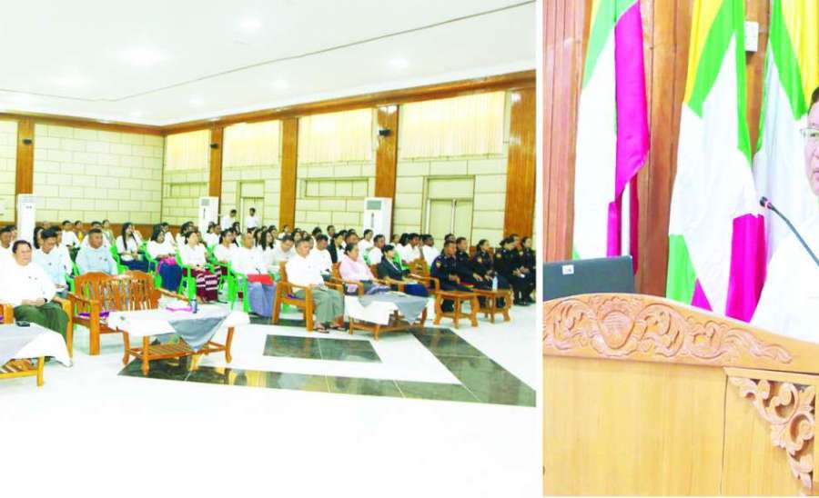 ပြည်ထဲရေးဝန်ကြီးဌာနနှင့် ဘဏ္ဍာရေးနှင့်အခွန်ဝန်ကြီးဌာနတို့ပူးပေါင်း၍ မီးဘေးလုံခြုံရေးဆိုင်ရာ အသိပညာပေးဟောပြောပွဲနှင့် လက်တွေ့မီးငြှိမ်းသတ်သရုပ်ပြပွဲကို ယနေ့နံနက်ပိုင်းတွင် နေပြည်တော်ရှိ ဘဏ္ဍာရေးနှင့်အခွန်ဝန်ကြီးဌာန ရုံးအမှတ် ၃၄ ၌ ကျင်းပရာ ဘဏ္ဍာရေးနှင့်အခွန်ဝန်ကြီးဌာန ဒုတိယဝန်ကြီး ဦးဟန်ဝင်းအောင်၊ ဌာနဆိုင်ရာတာဝန်ရှိသူများနှင့် အရာထမ်း၊ အမှုထမ်းများ တက်ရောက်ကြသည်။