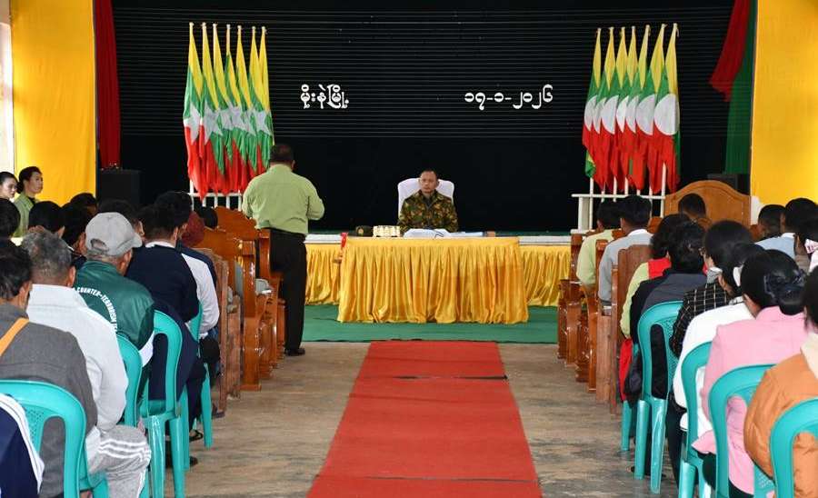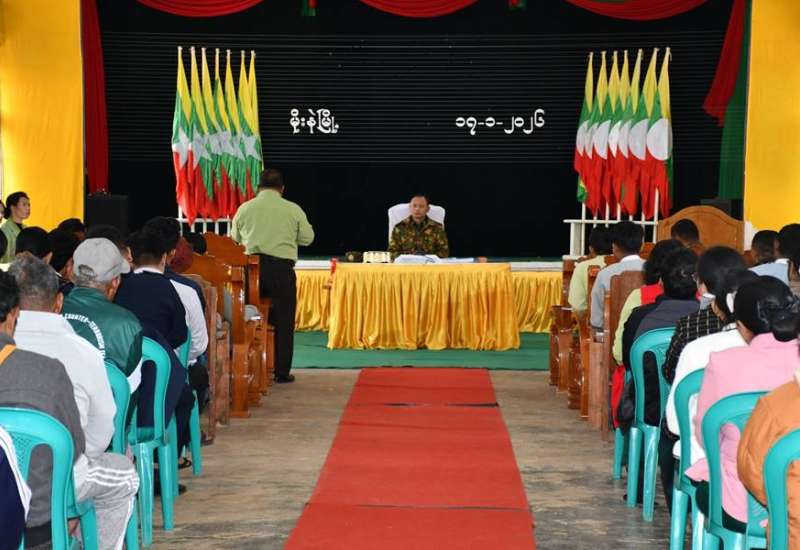 ရှမ်းပြည်နယ်(တောင်ပိုင်း)၊ မိုးနဲမြို့နယ်၌ ၂၀၂၅ ခုနှစ်၊ ပါတီစုံအထွေထွေရွေးကောက်ပွဲအပိုင်း (၃) အောင်မြင်စွာ ကျင်းပနိုင်ရေး ဌာနဆိုင်ရာများနှင့် တွေ့ဆုံပွဲကို ယနေ့မွန်းလွဲပိုင်းတွင် အဆိုပါမြို့ရှိ ကမ္ဘောဇခန်းမတွင် ပြုလုပ်ရာ