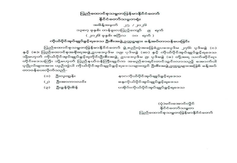 မြို့တော်ဝန်များ ခန့်အပ်တာဝန်ပေးခြင်း