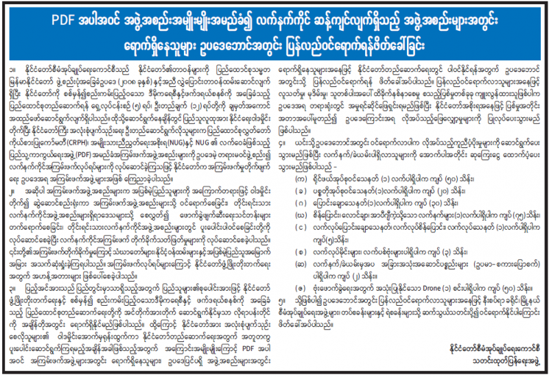 ပြည်ထောင်စုသမ္မတမြန်မာနိုင်ငံတော်၊ နိုင်ငံတော်စီမံအုပ်ချုပ်ရေးကောင်စီ၊ ကြေညာချက်အမှတ် ၂/၂၀၂၃