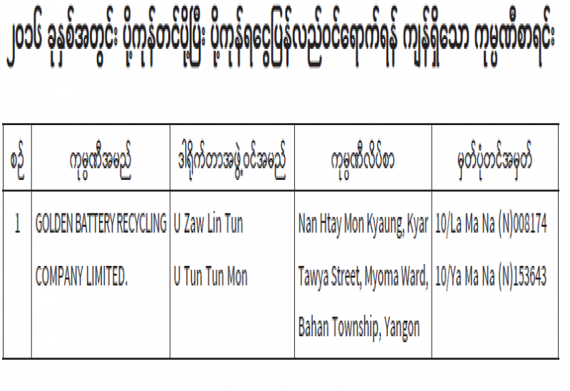 ပုံနှိပ်ခြင်းလုပ်ငန်း၊ ထုတ်ဝေခြင်းလုပ်ငန်းနှင့် သတင်းအေဂျင်စီလုပ်ငန်းလုပ်ကိုင်သူများ လုပ်ငန်းအသိအမှတ်ပြုလက်မှတ် အသစ်လဲလှယ်ရန် အသိပေးကြေညာခြင်း