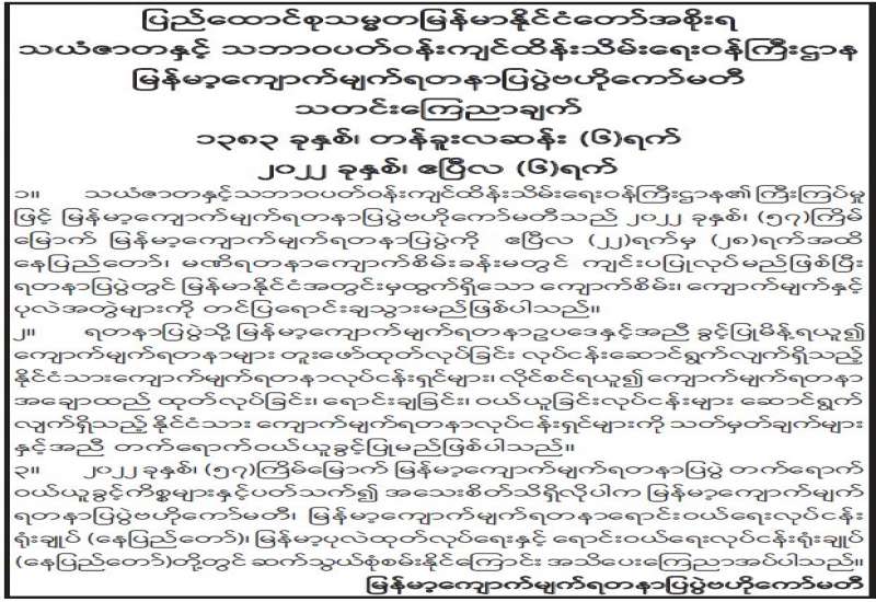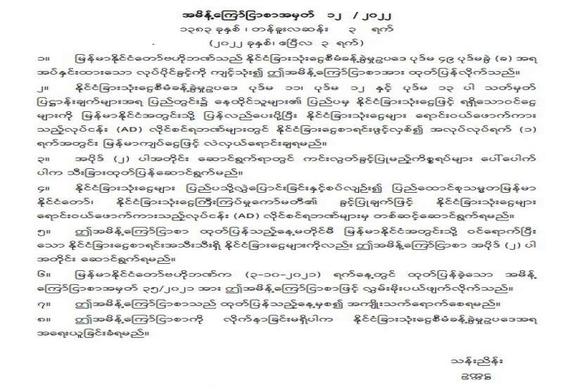 နိုင်ငံခြားသုံးငွေ စီမံခန့်ခွဲမှုနှင့်စပ်လျဉ်း၍ မြန်မာနိုင်ငံတော်ဗဟိုဘဏ်က အမိန့်ကြော်ငြာစာအမှတ် ၁၂/၂၀၂၂ ထုတ်ပြန်
