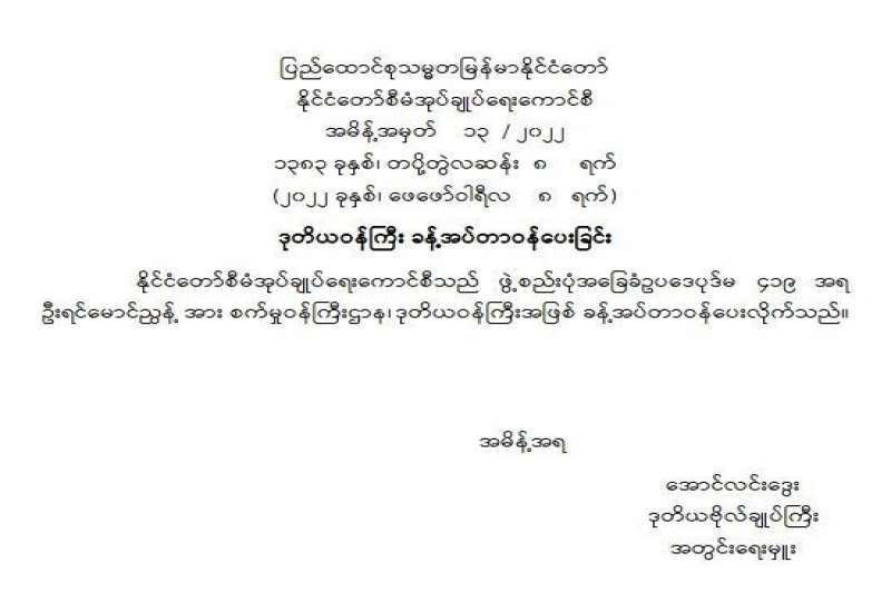 အမိန့်အမှတ် ၁၁ / ၂၀၂၂ ၁၃၈၃ ခုနှစ်၊ တပိုတွဲလဆန်း ၃ ရက်