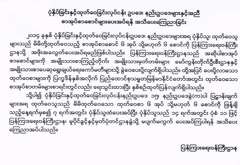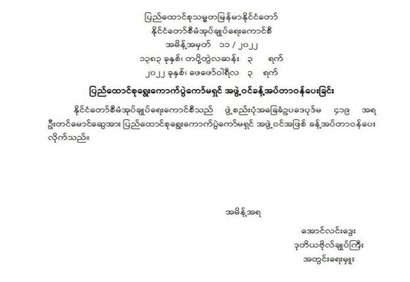 ပြည်ထောင်စုရွေးကောက်ပွဲကော်မရှင် အဖွဲဝင်ခန့်အပ်တာဝန်ပေးခြင်း