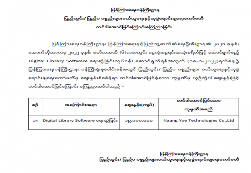 မျိုးသားစာပေဆုရွေးချယ်အလိုက် ပြည်ထောင်ထုတ်ပြန်လျက်ရှိ ၂၀၁၄ ခုနှစ် ပုံနှိပ်ခြင်းနှင့် ထုတ်ဝေခြင်းလုပ်ငန်းဥပဒေ၊ နည်းဥပဒေများအရ ပုံနှိပ်သူ၊ ထုတ်ဝေသူများသည် မိမိတို့ ထုတ်ဝေသည့် စာအုပ်စာစောင် ၆ အုပ် သို့မဟုတ် ၆ စောင်ကို ပြန်ကြားရေးဝန်ကြီး ဌာနသို့ အဖိုးအခလွတ်ပေးအပ်ရမည်ဖြစ်ပါသည်။ ပြန်ကြားရေးဝန်ကြီးဌာနသည် အဆိုပါစာအုပ် စာစောင်များကို အမျိုးသားစာကြည့်တိုက်၊ အမျိုးသားမှတ်တမ်းများ မော်ကွန်းတိုက် ဦးစီးဌာနနှင့် အမျိုးသားစာပေဆုရွေးချယ်ရေး ကော်မတီများသို့ ခွဲဝေပေးပို့လျက်ရှိပါသည်။ ထို့အပြင် ပေးပို့လာသော ထုတ်ဝေစာများကို ပြက္ခဒိန်နှစ်အလိုက် ပြည်ထောင်စုသမ္မတ မြန်မာနိုင်ငံတော်အတွင်း ထုတ်ဝေသော စာအုပ်စာတမ်းများစာရင်း တွင်လည်း ရေးသွင်းထားပြီး နှစ်စဉ်ထုတ်ပြန်လျက်ရှိပါသည်။