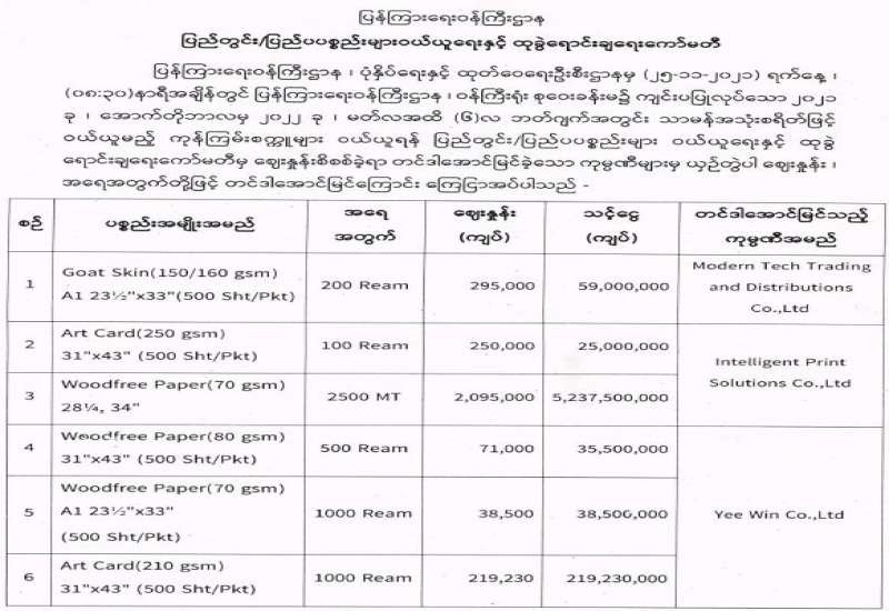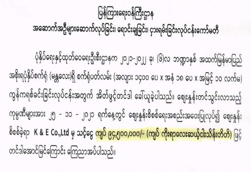 ရုပ်ရှင်ရုံသုံး သစ်သားထိုင်ခုံအဟောင်း (၉၇) တွဲကို ရောင်းချရန် အိတ်ဖွင့်တင်ဒါခေါ်ယူခြင်း
