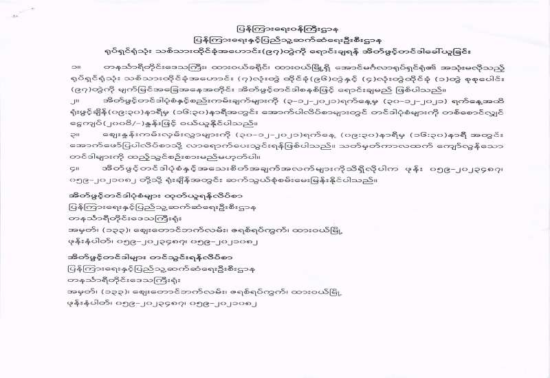 ၁။ကိုဗစ်-၁၉ ကပ်ရောဂါ ကူးစက်ပြန့်ပွားမှုကို ကာကွယ်ထိန်းချုပ်သည့် အစီအမံများအား ပိုမိုထိရောက်စွာ ဆောင်ရွက်နိုင်ရန်ရှေးရှုလျက် ပြည်ထောင်စုသမ္မတမြန်မာနိုင်ငံတော်၊နိုင်ငံခြားရေး ဝန်ကြီးဌာန အနေဖြင့် ကမ္ဘာ့နိုင်ငံအသီးသီးမှ မြန်မာနိုင်ငံသို့ လာရောက်ကြမည့် ခရီးသွားများ အပေါ် ပြည်ဝင်ခွင့်ယာယီကန့်သတ်ချက်များအား ထုတ်ပြန်ထားခဲ့ပြီး၊ အဆိုပါကန့်သတ် ချက်များ အားလုံးကို ၃၀-၁၁-၂၀၂၁ ရက်နေ့အထိ ဆက်လက်တိုးမြှင့်သတ်မှတ်ကြောင်း ၁-၁၁-၂၀၂၁ ရက်စွဲပါ ကြေညာချက်ဖြင့် ထုတ်ပြန်ထားခဲ့ပြီးဖြစ်ပါသည်-