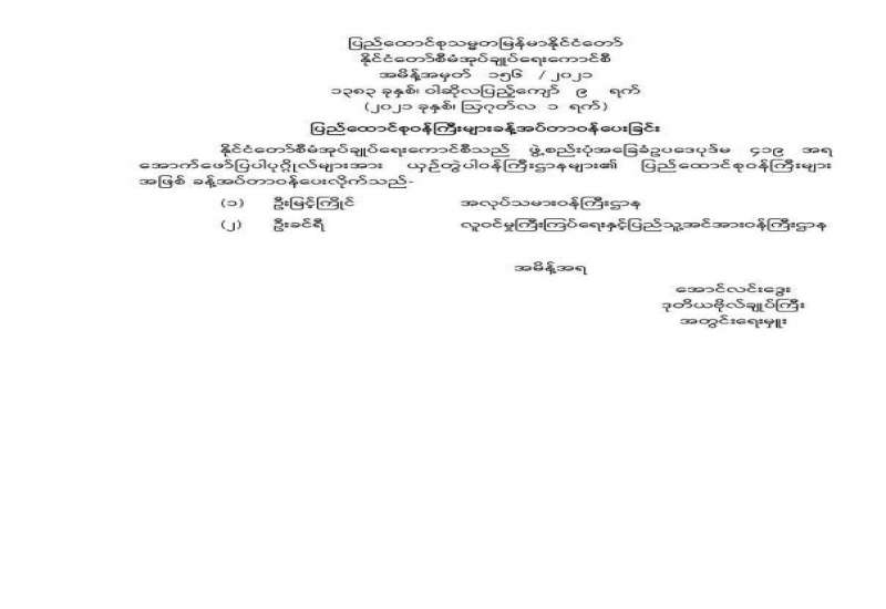 တိုင်းဒေသကြီး သို့မဟုတ် ပြည်နယ်စီးပွားရေးရာဝန်ကြီးများ ခန့်အပ်တာဝန်ပေးခြင်း