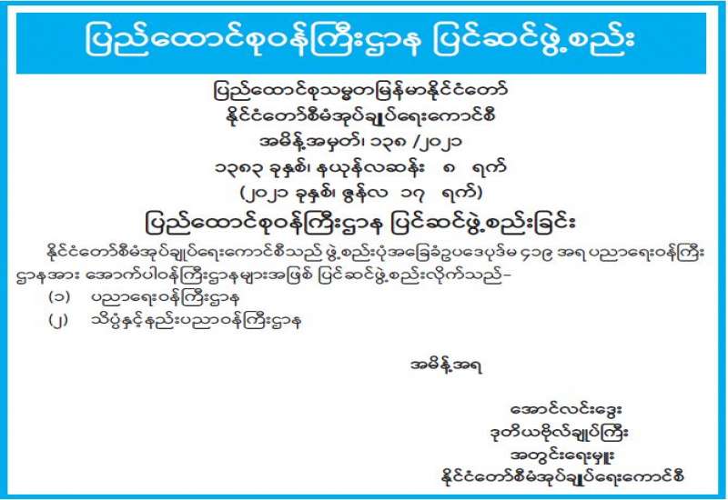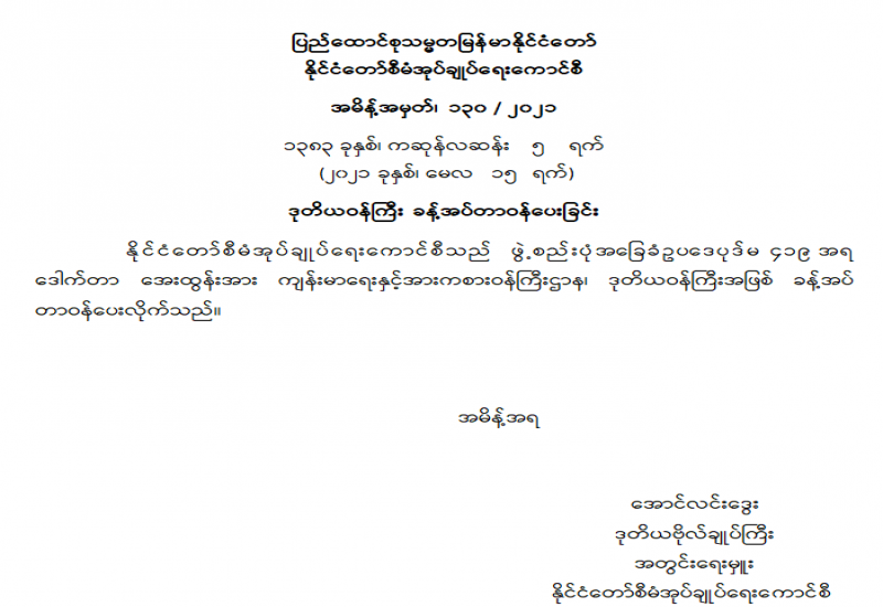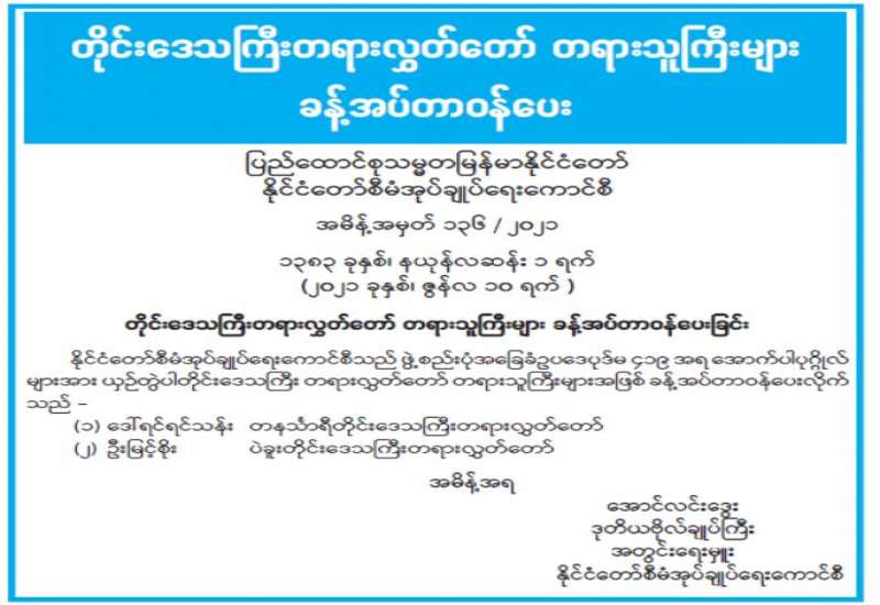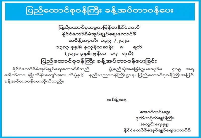 ၁။ ပြည်ထောင်စုရွေးကောက်ပွဲကော်မရှင်သည် ၂၀၂၀ ပြည့်နှစ် နိုဝင်ဘာလ ၈ ရက်နေ့တွင် ကျင်းပပြုလုပ်သည့် ပါတီစုံဒီမိုကရေစီအထွေထွေရွေးကောက်ပွဲနှင့်စပ်လျဉ်း၍ ကယားပြည်နယ် မြို့နယ် ၇ မြို့နယ်၏ မဲစာရင်းများနှင့် မဲပေးခဲ့မှုအခြေအနေများကို စစ်ဆေးခဲ့ပါသည်။