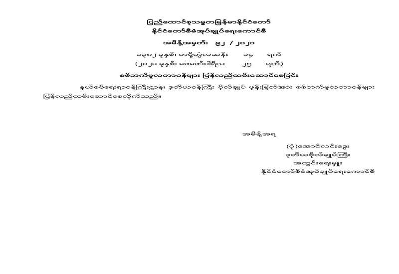 ပြည်ထောင်စုသမ္မတမြန်မာနိုင်ငံတော် နိုင်ငံတော်စီမံအုပ်ချုပ်ရေးကောင်စီ အမိန့်အမှတ်၊ ၈၄ /၂၀၂၁ ၁၃၈၂ ခုနှစ်၊ တပို့တွဲလဆန်း ၁၂ ရက် (၂၀၂၁ ခုနှစ်၊ ဖေဖော်ဝါရီလ ၂၃ ရက်) ဒုတိယဝန်ကြီး ခန့်အပ်တာဝန်ပေးခြင်း
