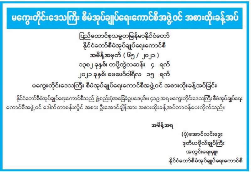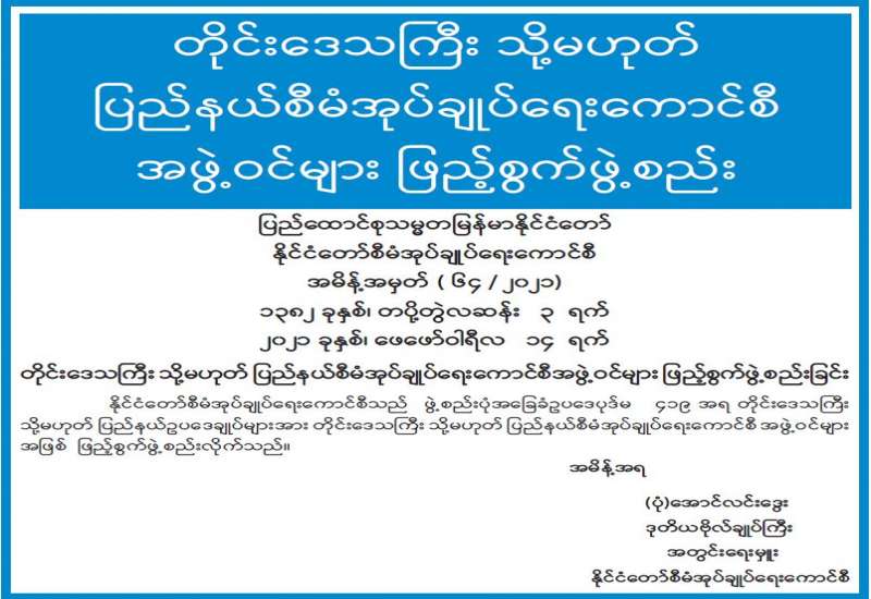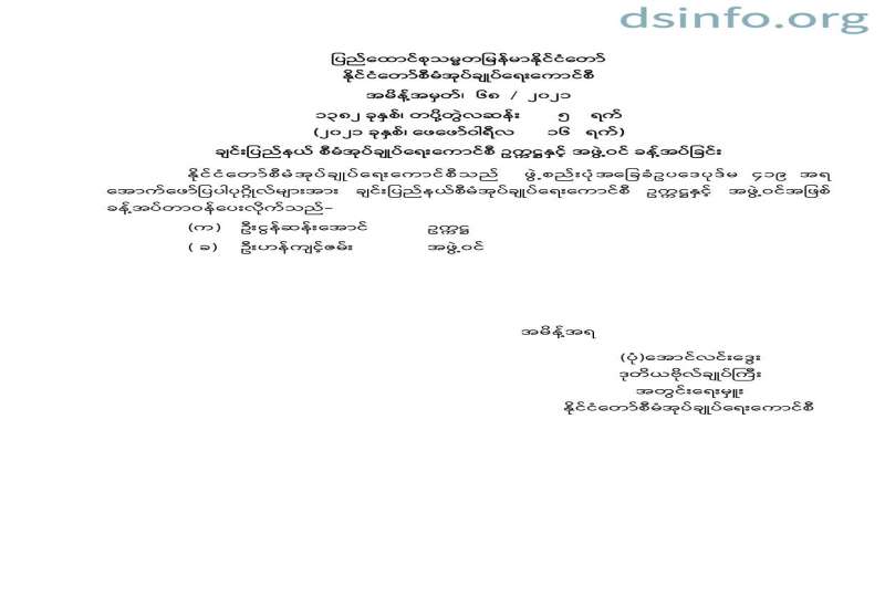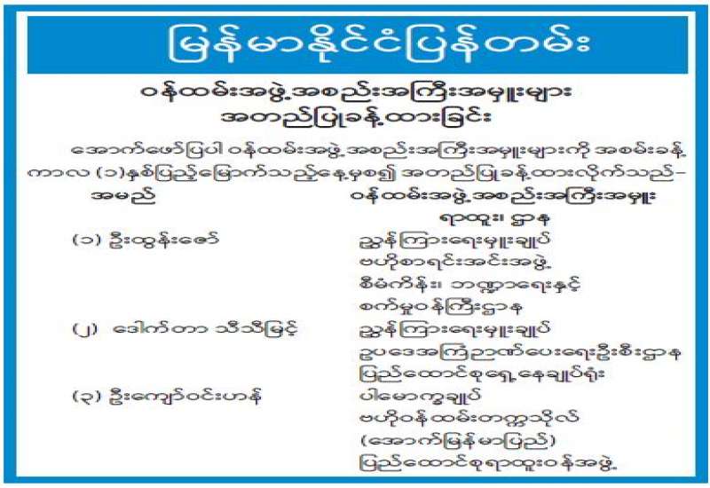 မကွေးတိုင်းဒေသကြီး စီမံအုပ်ချုပ်ရေး ကောင်စီအဖွဲ့ဝင် အစားထိုးခန့်အပ်